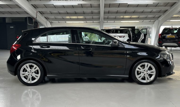 Mercedes-Benz A Class 1.6 A180 Sport Finished In Black. 17″ Factory Alloy Wheels, Full Black Leather Interior, Satellite Navigation, Reversing Camera, Cruise Control, Air Conditioning, Dual Zone Climate Control, DAB/CD/MEDIA CONNECTIVITY, Bluetooth, Trip Computer, Multi Function Steering Wheel. All Documents Present, 80 Point Health Checked By A Qualified Mechanic, HPI Car Data Checked And Clear, Looking To Finance? No Problem We Can Help. Open 6 Days, Part Exchange Welcome.